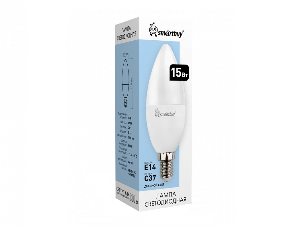 Лампа светодиодная SMARTBUY C37 15Вт 220V 4000 (нейтральный свет) (SBL-C37-15-40K-E14) (10/100)