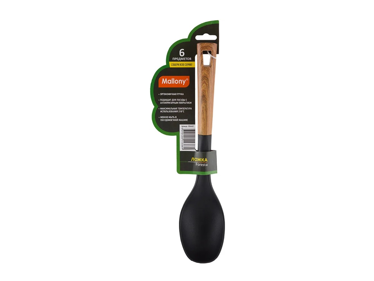 Ложка из нейлона, FORESTA, с пластм ручкой/дизайн под дерево, 32,5*7 см (1/24/96)