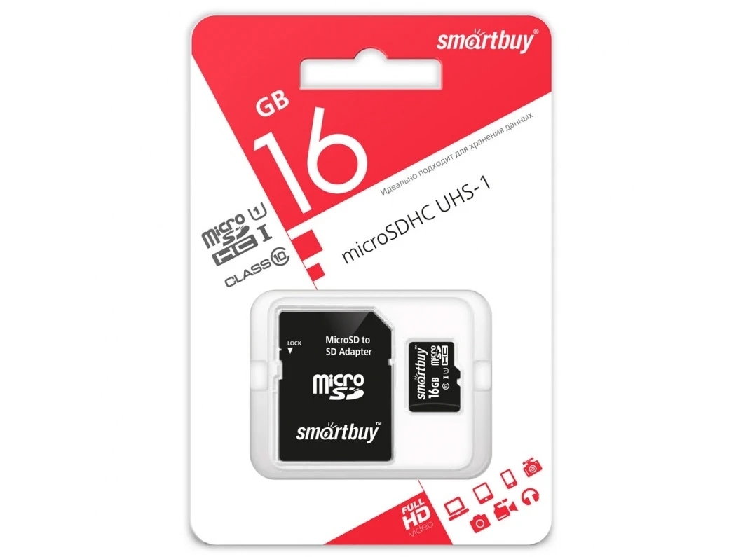 MicroSD 16GB Smart Buy Class 10 UHS-I + SD адаптер