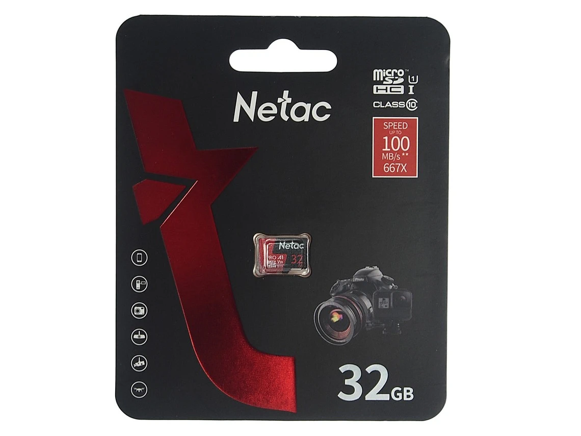 MicroSD 32GB Netac P500 Extreme Pro Class 10 UHS-I A1 V10 (100 Mb/s) без адаптера
