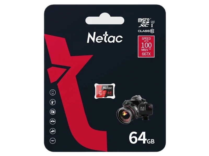 MicroSD 64GB Netac P500 Extreme Pro Class 10 UHS-I A1 V30 (100 Mb/s) без адаптера