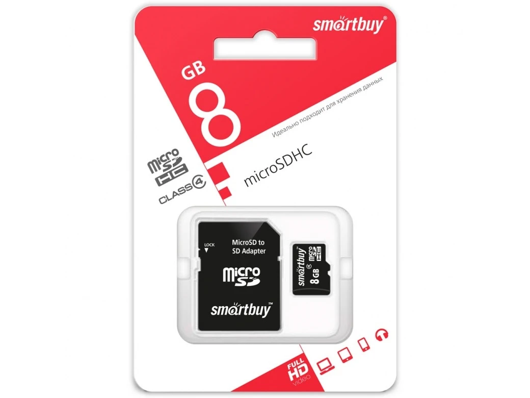 MicroSD 8GB Smart Buy Class 4 + SD адаптер