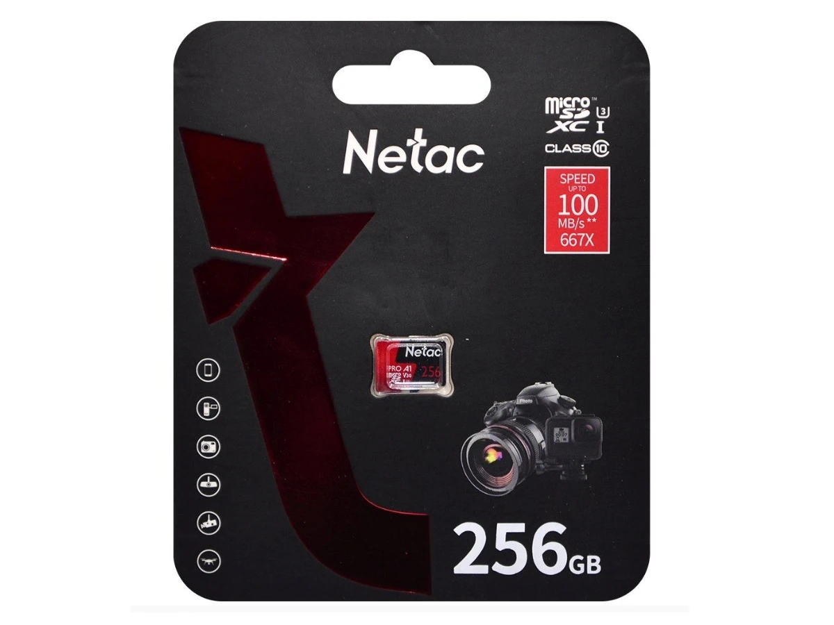 MicroSDXC 256GB Netac P500 Extreme Pro Class 10 UHS-I A1 V30 (100 Mb/s) без адаптера