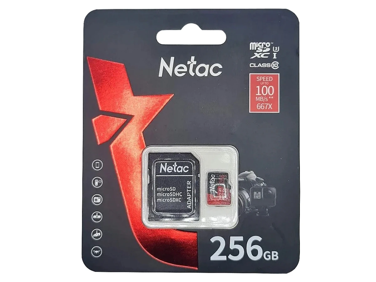 MicroSDXC 256GB Netac P500 Extreme Pro Class 10 UHS-I A1 V30 (100 Mb/s) + SD адаптер