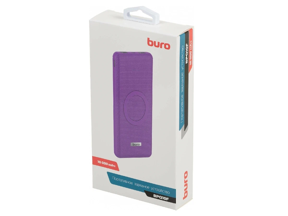 Мобильный аккумулятор Buro BPQ10F 10000mAh 3A QC PD беспроводная зарядка фиолетовый (BPQ10F18PVL)