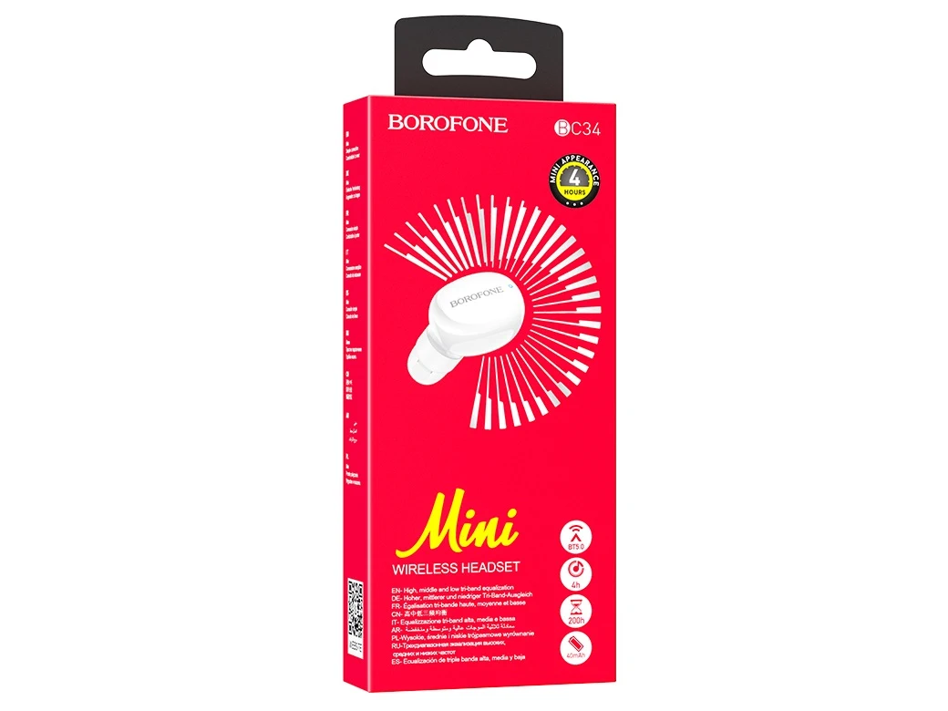 Наушники внутриканальные Borofone BC34, MIKEY, bluetooth 5.0, моно, цвет: белый(1/192)