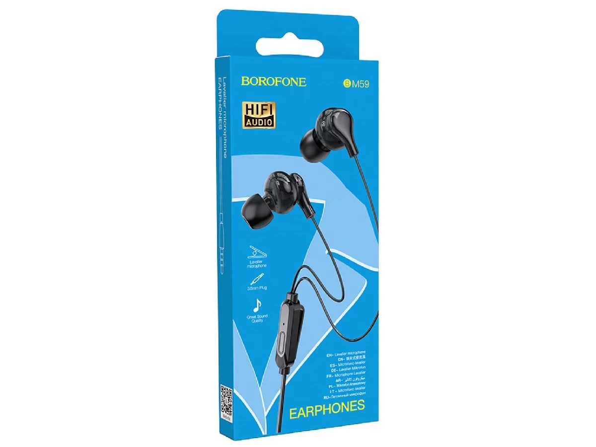 Гарнитура Borofone BM59, AUX разъём с МК без рег.громкости длина 1.2м, цвет: черный