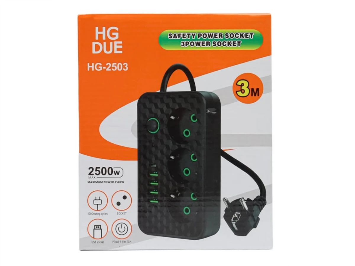 Сетевой фильтр N 2503 3м. 3 розетки, 4 USB, 1 Type -C, Чёрный