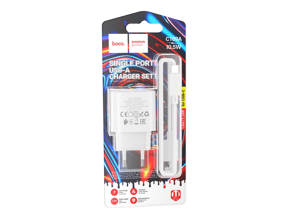СЗУ 1 USB HOCO C109A 10.5W Type-C белый (1/27/162)
