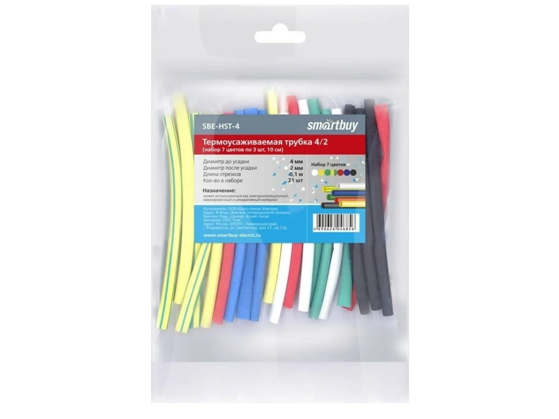 Термоусаживаемая трубка SMARTBUY 4/2 набор (набор 7 цветов по 3 шт, 10 см) (10/600)