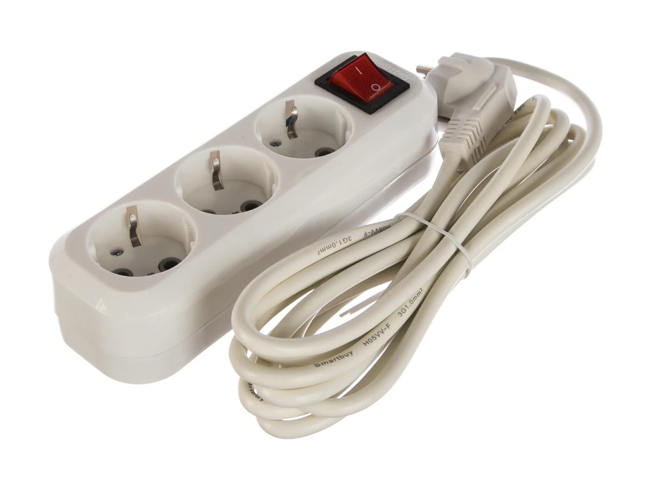 Удлинитель Smartbuy 3 гнезда 3 метра 16А/3,5кВт с выключателем и заземл. ПВС 3х1,0 (SBE-16-3-03-ZS)
