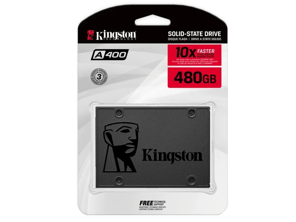 Внутренний SSD Kingston 480GB A400, SATA-III, R/W — 450/500 MB/s, 2.5″, TLC